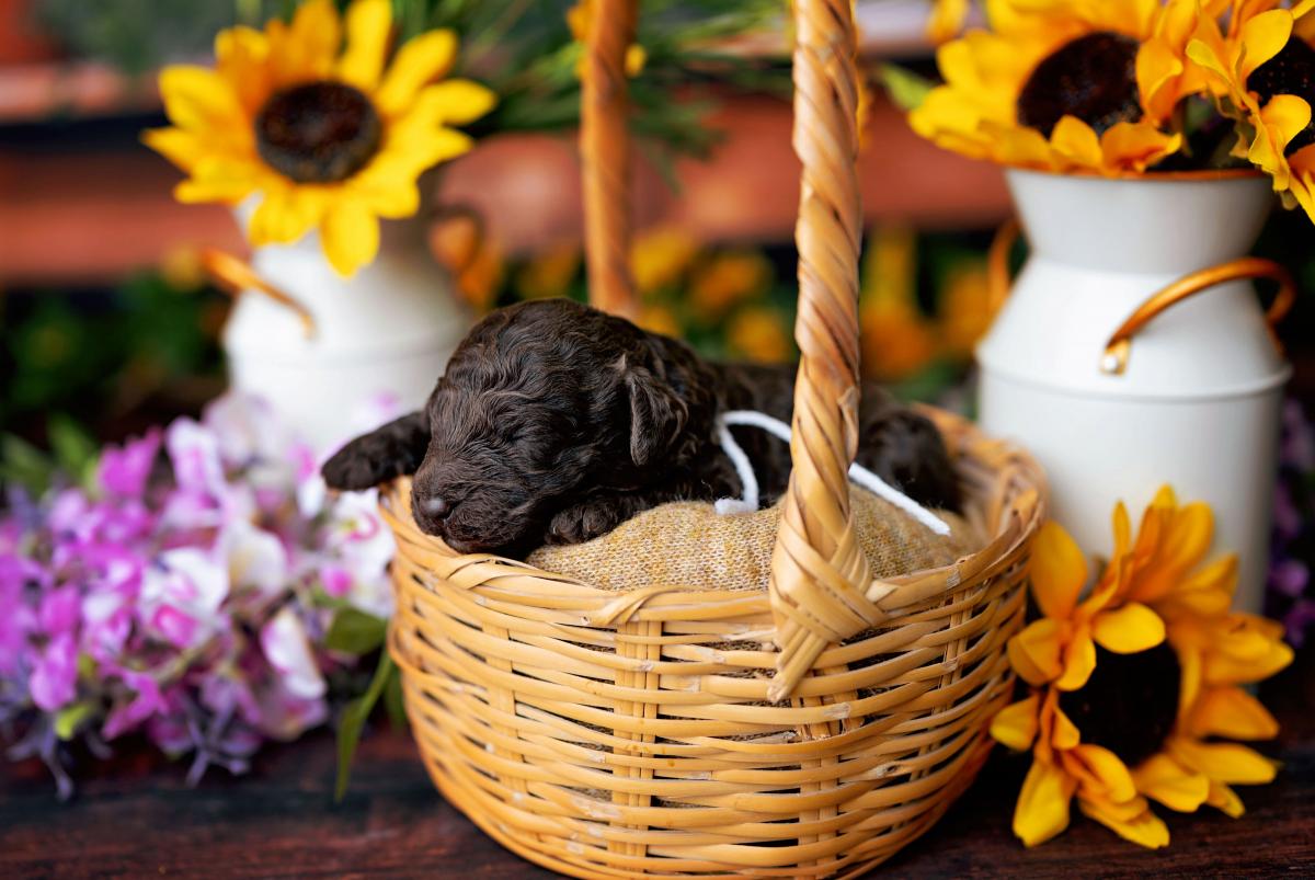 We’re thrilled to share that our newest litter of 8 puppies have arrived! These medium-sized pups have soft wavy and curly coats in gorgeous parchment and caramel shades.