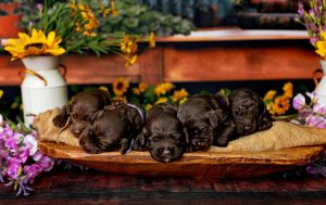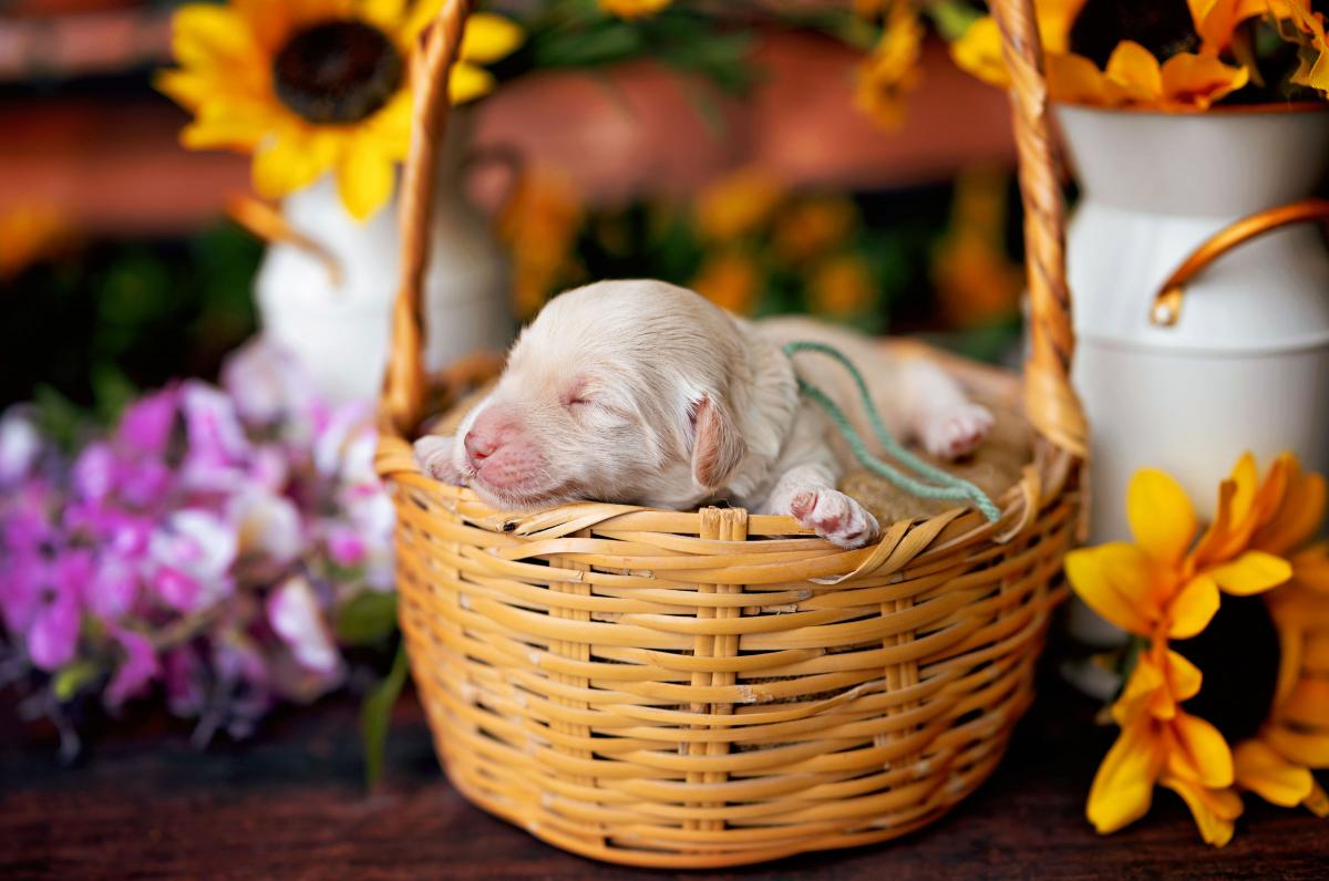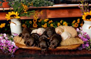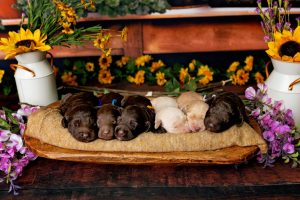 Last but never least, Hazel is our cool caramel beauty with a silky wavy fleece coat. As the last-born, she has a tender, affectionate spirit but still keeps up with her siblings in playtime. She’s athletic, smart, and loves people, with an intuitive ability to sense when it’s time to play and when it’s time to rest. Hazel will make a loyal and loving companion for any family.