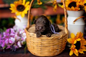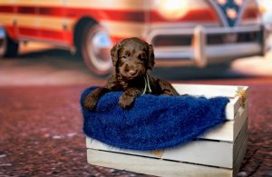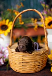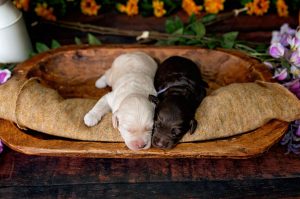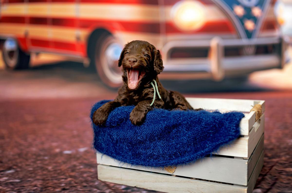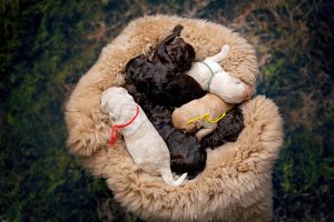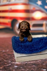 Meet Target, our 6th-born boy, dressed in a handsome parchment-colored wavy fleece coat. He’s middle-of-the-litter in size and full of heart. Athletic and smart, Target has that special “read-the-room” ability — he knows when to be playful and when to be calm. His gentle, people-focused nature makes him an excellent candidate for service or therapy training, or simply as a loyal family companion.